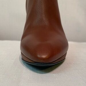 Lanvin Paris Ankle Calfskin Booties Sz US 8.5B Silver Stiletto Heel Brown