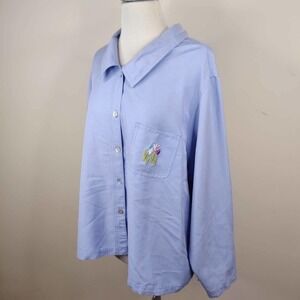 HSZ Studio Shirt 2X Button Up Floral Embroidered Top