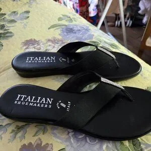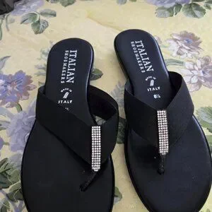 Italian shoemakers sandals black with rhinestones. Very comfortable and work well for day or evening!