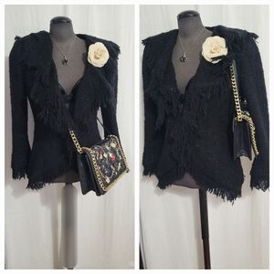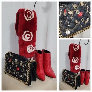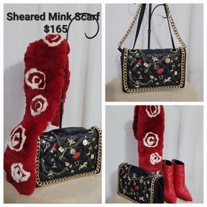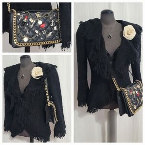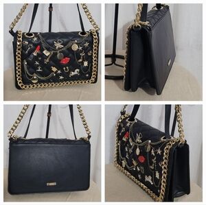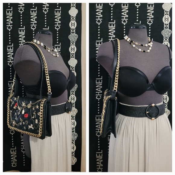 In like new condition / 10 x 8 x 2 / can be worn Crossbody or shoulder / length od strap is 56 in total ( chain 26 in / pleathetr strap 30 in / inside zip pocket/ used ONCE!
