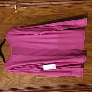 pink lightweight, mousture wicking with thumbhole size 1X with 22" chest and 25" length