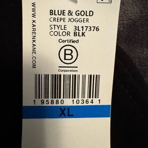 Karen Kane Blue and Gold crepe joggers-color: black- size xl. Elastic waist and at the ankle. Never worn with tags. Dressy look due to material (crepe) even though joggers.