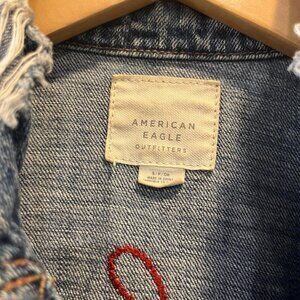 American Eagle Jacket Women’s Blue Denim Embroidered Flowers Just For Fun S