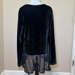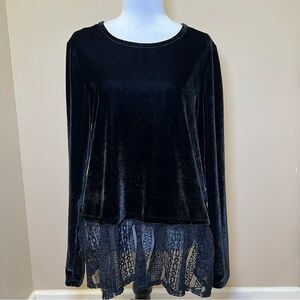 Signature Studio Women’s Black Velour & Lace Flared Sleeves Shirt. Size Large