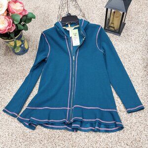 3084 Size Small Matilda Jane Fleece Lined Zip Up Hooded Jacket. In Teal Blue.