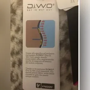 -D.I.W.O. Treatment (dry in wet out) of this special fabric wicks sweat outward to give the wearer unique comfort.