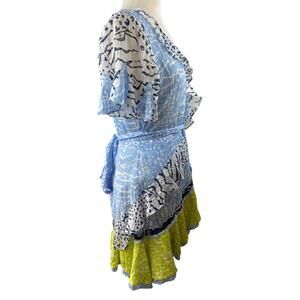 Tanya Taylor Bianka Silk Blend Wrap Dress Party Mini Leopard Short Sleeve Size 6