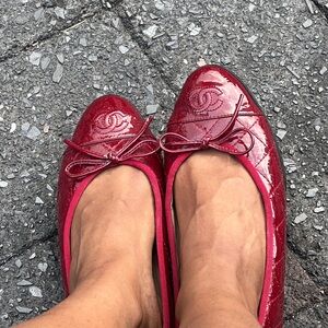 The ballet flats are so iconic! They are 100% authentic Chanel Red Patent leather and will add a pop of color to all of your outfits. They are a size 37 and Chanel generally runs a full size small so these are best for a size US 6-6.5 MAX.