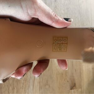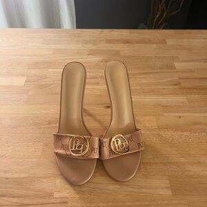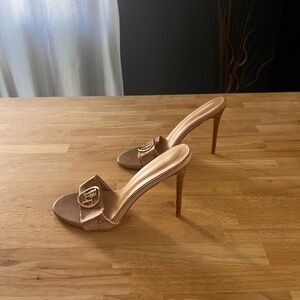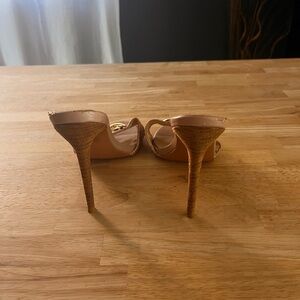 Tan pretty little thing stiletto slip on logo heels size 8