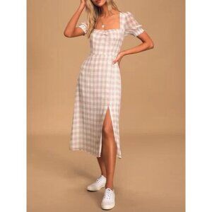 Lulus Womens Dress Small Soft Side of Mauve Zip Back Puff Sleeves