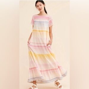 Anthropologie Women's Striped Merida Tiered Maxi Pocket Dress