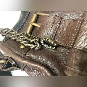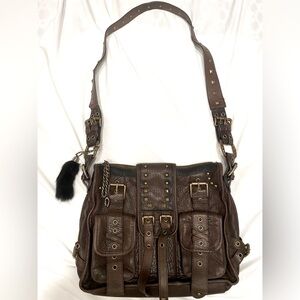 NWOT Vintage BETSEY JOHNSON Brown Leather Crossbody Buckle Horseshoe Bag