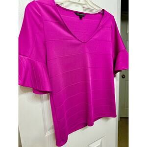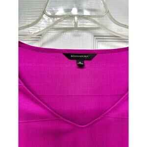 Banana Republic Bright Pink w. Textured Stripes, Ruffle 3/4 Sleeve Blouse - Sm