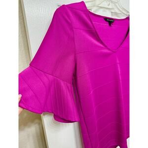 Banana Republic Bright Pink w. Textured Stripes, Ruffle 3/4 Sleeve Blouse
