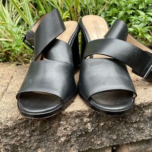 BCBGMAXAZRIA Sara Chunky Square Heel Sandal Ankle Strap Black Leather Size 9.5