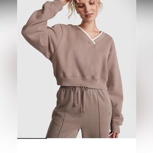 Victoria’s Secret Pink Premium Fleece V-Neck Pullover In Iced Coffee-SizeM🤎