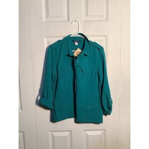 Button down jacket-style shirt with four front pockets. Good vintage condition. No stains or holes.