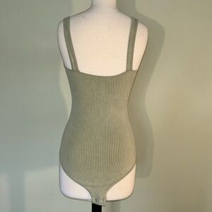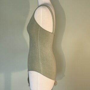 AURA sage green ribbed snap sleeveless tank bodysuit in women’s small/medium