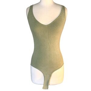 Gorgeous bodycon bodysuit in sage green ribbed stretch sleeveless tank top bodysuit. V-neck bodysuit. Stretches small to medium