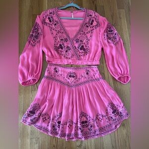 NWOT FREE PEOPLE Nico Embroidered Set Cropped Top and Skirt