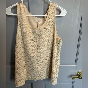 Nice dressy tank or sleeveless top by J. Crew. Full silky lining with lace overlay in a pretty cream or ivory neutral color. Side zip detail. Dress up or down with a suit or jeans ! Size 10