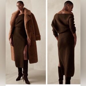 Banana Republic Colleta Off Shoulder Midi Sweater Dress Wool Womens Medium Brown