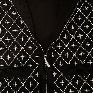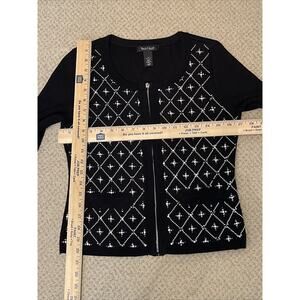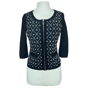 WHITE HOUSE BLACK MARKET Women’s Size S Beaded Embellished Cardigan Black Zip