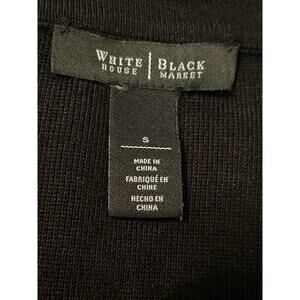 Add a touch of elegance to your wardrobe with this beautiful cardigan from White House Black Market. The black beaded embellishments on a white background create a stunning contrast that is sure to turn heads. This women's size S sweater is perfect for any occasion and is made with high-quality materials to ensure durability. The zip closure adds a unique touch to the design, making it a must-have for any fashion-forward woman. Whether you're dressing up or down, this cardigan is the perfect addition to your collection.