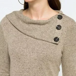 Kaavia Button Detail Brushed Knit Top - Beige