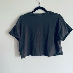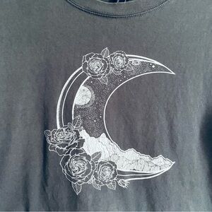 Forever 21 Women's Gray & White Moon Graphic Cropped Short Sleeve T Shirt Small