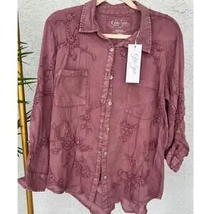 NWT Anthropology by Kyla Seo Jo Buttons Up Cotton Embroidered Shirt Size Small