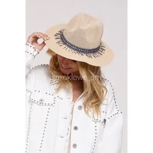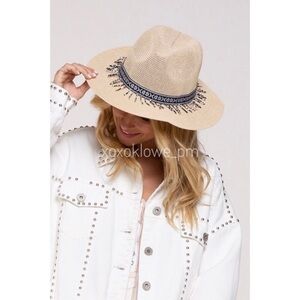 POL Natural + Decorative Beaded Fringe Band Woven Sun Hat