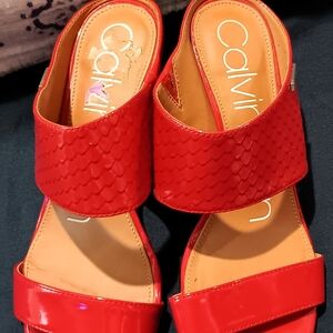 Calvin Klein- Cecily Python Patent Open Toe Heel- Red 6.5