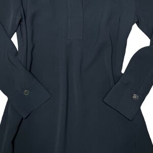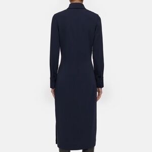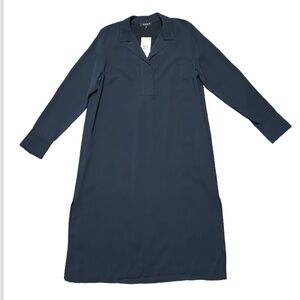 The pefect long sleeve dress for those cooler months.Straight silhouette. Shirt collar. Drop shoulder. Long sleeve. Button cuff. Hidden button placket. Seam pockets. Back detail.