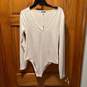 Steve Madden Deep End Bodysuit in Ivory. Long sleeves. Snap closure. Women's size large. New with tags.