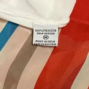 White Dress underneath (Liner) with Sheer Layers of Red, Sky Blue, Cream, & Tan (Latte)