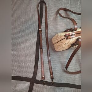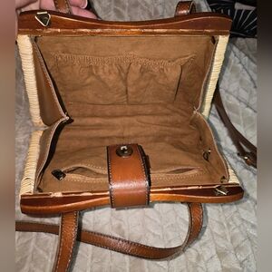 Patricia Nash Marcianise Wicker Brown-Tan Leather Trim Satchel Vintage Handbag .