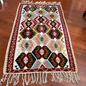 Fantastic looking wool handmade Persian rug. Washing machine/dryer safe. Easy to fold and ship. Pre-loved condition