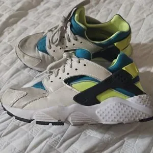 Youth Nike Huarache shoes Color white with green accents Size 5
