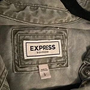 Express Women’s Boyfriend Relaxed Fit Button Up in Olive Green, Size Large