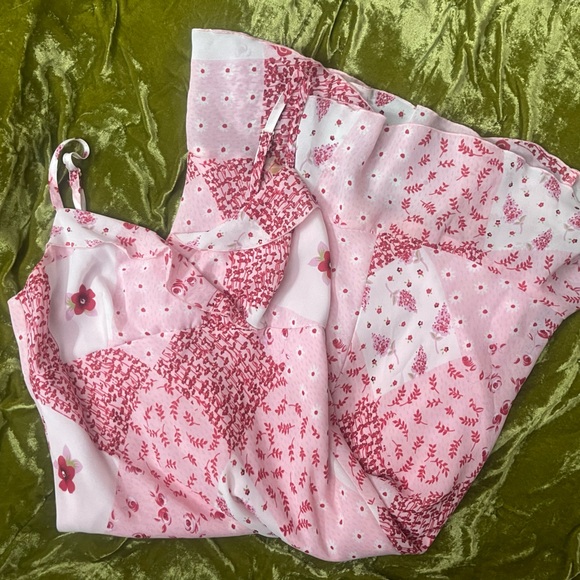 Vintage pink summer cottagecore flower floral plants sleeves white ruffles dress