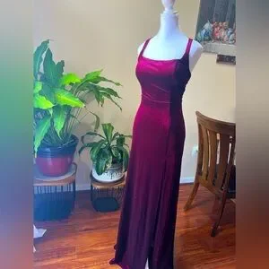 Christina Lace-Up Back Velvet Dress (Burgundy)