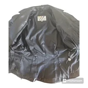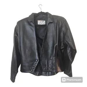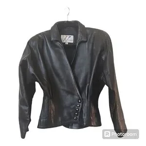 Women's Wilson Vintage Black Leather Jacket, Size Small, Shoulders 20", Length 22 ", Sleeves 16". No Pockets, Very Soft Leather, Snap Closure, Pleated in Front and Back, Shoulder Pads, Excellent Pre-Owned Condition.
