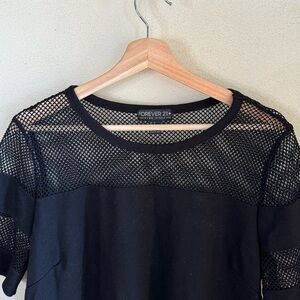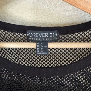 Forever 21 Plus Size Black Mesh Stripes Short Sleeve Crop Top US 1X 90s Grunge