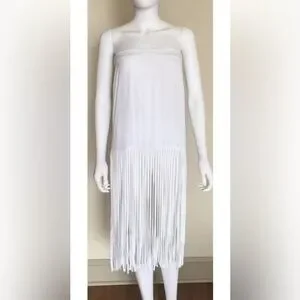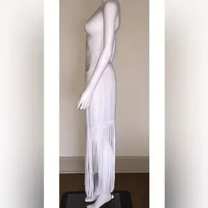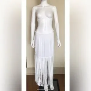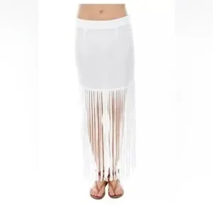 MONROW ShopBop white crepe fringe midi maxi boho beach festival skirt M