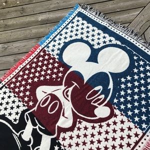 Mickey Mouse Reversible Blanket Woven Fringe Throw Disney Stars Stripes