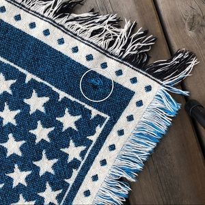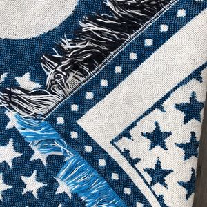 Good pre-owned condition. Very eye catching woven throw with big Mickey and sweet stars. Black, cream, rich red and blue colourway. Perfect for across the back of your couch. Missing Disney or huge Mickey fan? This is a great find. Very slight pilling. One small flaw on darker side and faint, almost not noticeable, stains by logo as pictured.