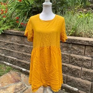 Lacausa Cassie Dress Anthropologie “tar” Gold Yellow Babydoll Layered Small S
