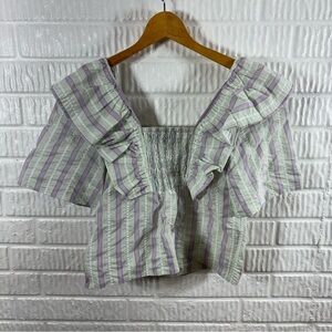 Ganni Ruffled Striped Recycled Seersucker Top NWT