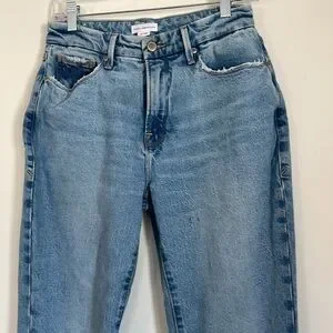 Crafted of light stretch denim, the Good Girlfriend jeans from GOOD AMERICAN feature a laid-back fit through the hip and a loose-fit leg. Back darts and light fraying finish this flattering silhouette.
